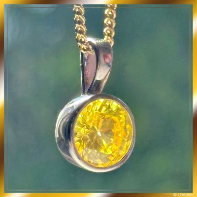 Hochwertiger goldgelber Zirkonia-Diamant mit fein geschliffenen Facetten. Als Schmuckstück gefasst in 925 Silber.